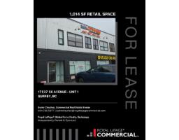 Prime retail space available for lease in the heart of Cloverdale! Unit 1 at 17537 56 Avenue offers excellent visibility along a high-traffic corridor with convenient access to Highway 10 and major routes. This versatile ground-floor unit is ideal for professional offices, retail, or service-based businesses. Surrounded by established businesses and growing residential communities, this location provides strong exposure and accessibility. A great opportunity to establish or expand your business sin a thriving commercial area of Surrey. (id:12562)