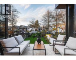 OPEN HOUSE APRIL 25TH/26TH 2-4PM. Front unit on a quiet, tree-lined street in Hastings Sunrise. North-facing with views to Grouse and the Lions. 3 full size bedrooms each with its own ensuite - plus a powder room. A layout that feels considered, not forced. Professionally designed by Kenzi Design House with custom lighting, millwork, tile, and a transitional design. Black-framed windows pushed to the maximum allowable and 6´ stairwell glazing pull light through every level. The third bedroom offers full height, no slope. Accordion doors open to a full yard. Radiant heat + heat pump/AC, automated blinds, built-in speakers, security, gas BBQ hookup. Kitchen with island and window over the sink. Full-size insulated garage with epoxy - work, train, or create. Minutes to Commercial Drive, Hastings amenities, Downtown, North Shore. Hastings Elementary / Templeton Secondary. Summers at the PNE. 2-5-10 warranty incl. Built by Morala Homes. "Humble beginnings. High standards." (id:12562)