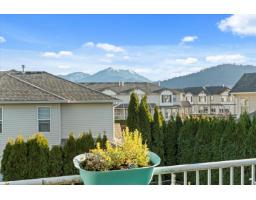 This 3-bedroom, 2-bath upper level townhouse in the heart of Sardis offers an exceptional opportunity for first-time buyers, young families, and savvy investors. Enjoy a bright, well-designed living space with mountain views and access to a generous common green space, perfect for relaxing or play. The kitchen features newer, state-of the art appliances and a convenient breakfast bar for everyday living and entertaining. A large balcony extends your living space outdoors, ideal for taking in the views. Complete with two parking stalls and two storage lockers, this home delivers outstanding value in a highly sought after location. (id:12562)