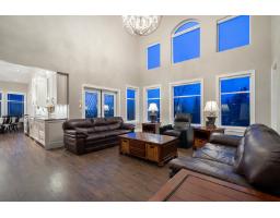 Set behind a gated entry on 6.3 private acres just 12 minutes from town, this hilltop estate offers over 6,000 sq ft of refined living with a true sense of arrival. A round driveway leads to a grand 15' foyer and a dramatic south facing family room with 19' ceilings. With no stairs to the main floor, everyday living feels effortless. The gourmet kitchen with Electrolux Icon appliances opens to a wraparound sundeck, while the main floor primary retreat features a private balcony and elegant 5 piece ensuite. Upstairs offers 3 oversized bedrooms, and the walkout lower level includes a suite, bar, gym, and room to gather. Covered RV parking, horse stalls, generator, and a 34x30 workshop with automated door. Too much to list come visit the *Open House* April 4, 5, 6 from 2:00 - 4:30 PM. (id:12562)
