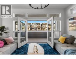 Backing directly onto the Park, this beautifully appointed three-level residence offers refined living in a peaceful park-side setting. The main level features open-concept living with a chef-inspired kitchen showcasing quartz countertops, an oversized island, soft-close cabinetry, and stainless steel appliances, flowing into the great room with a fireplace and park-view windows. Premium upgrades include California Closets, motorized blinds, designer lighting, and a private hot tub. Upstairs, the spacious primary suite offers vaulted ceilings, a sitting area, walk-in closet, and spa-inspired ensuite. The fully finished lower level with separate entry offers a recreation room with partial kitchen and suite potential. Steps to parks, trails, schools, and amenities. (id:12562)