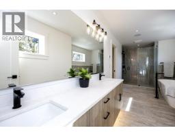 Absolutely stunning new Noort home in popular Calverhall. This 4,449 square ft 3 level plan is located on a very bright and private 50 x 140 ft lot with lane access and separate double garage plus extra open spots. The custom design offers a modern, open plan with 2" x 8" exterior walls, expansive h/w floors, big gourmet kitchen with large island, impressive s/s appliances and large adjoining family room with sliders leading to a private covered patio. The upstairs offers 4 bedrooms including a gorgeous primary suite with one of the nicest ensuite baths you'll ever see. Rec room, guest bedroom and bath down for upstairs plus a separate self contained 2 bedroom legal suite. Lutron lighting, AC and more. (id:12562)