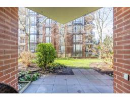 $641.43 MonthlyWelcome to Sussex House, a sought-after concrete low-rise in the heart of White Rock. This garden-level 2 bed + den, 2 bath home offers 1,297 sq ft with a private, BBQ-friendly patio surrounded by mature landscaping - perfect for pet lovers and outdoor living. Walk to shops, cafés, restaurants, and the farmers' market. Thoughtfully updated with flat 9' ceilings (no popcorn), new hardwood floors, crown moulding, and an open-concept layout. The primary suite fits a king size bed and features a walk-through closet with built-ins and a spa-inspired ensuite with walk-in shower. Generous second bedroom, versatile den, and large in-suite storage room. Amenities include clubhouse, fitness room, guest suite, and a proactive strata with a healthy contingency fund. OPEN HOUSE SUN MAR 1, 1-3PM (id:12562)