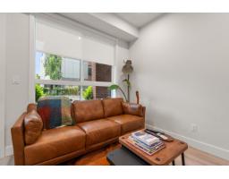 Welcome to the York in Garrison! This spacious, one-year-old, 717 sqft, ground floor 2-bedroom, 1-bath corner unit condo offers modern living in a prime location. As a former show home, it features designer finishes, upgraded fixtures, and a bright, open layout. Enjoy a sleek kitchen with stainless steel appliances, generous bedrooms, in-suite laundry, and easy ground-floor access. Step outside to your own private patio! Located close to shopping, dining, transit, and parks"-this move-in-ready home blends comfort, style, and convenience. Comes with 2 parking stalls & 1 storage locker. (id:12562)