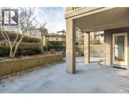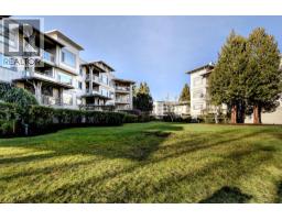 Laguna is a quiet, well-maintained gated community surrounded by mature trees and shrubs. This spacious 977sf garden-level unit offers 2 bedrooms and 2 bathrooms with laminate floors in most areas and a massive 465sf paved patio bordered by planters. The rectangular living room features a gas fireplace, ceiling light, and a large window facing the patio. The dining area has a classy chandelier, while the kitchen offers three rows of white cabinets and a pass-through window. The primary bedroom fits a king-size bed, overlooks the patio, and includes a walk-in closet with mirrored doors plus a 4-piece ensuite. The second bedroom also overlooks the patio, with another 4-piece bathroom. Rent includes one parking stall and a hanging locker. (id:12562)