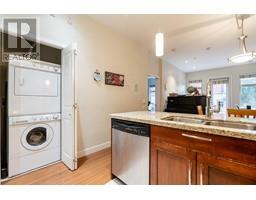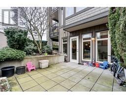 $358.75 MonthlyPrivate, Quiet, & Secure! Spacious 1 Bdrm home lives just like a townhome with it's own private entrance. End unit with just under 700 square ft inside. Includes a dramatic stone gas fireplace, in suite Laundry + huge private 200+ square ft garden patio. Open concept layout with 10' ceilings & well appointed kitchen with granite countertops, full size stainless steel appliances & gas range. The semi-ensuite bathroom has in-floor radiant heat. This beautiful home is easily heated in the winter with just the natural gas fireplace; gas is included in maintenance fees (only $359/month) & home is cool in the summer. Close to schools, shopping, transit, restaurants & the Harry Jerome rec centre. Pet Friendly. 1 parking + 1 storage locker. Well funded strata. (id:12562)