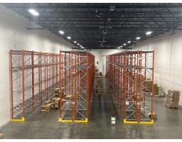 A modern, operation ready large bay warehouse for lease in South Surrey, zone IB-1 The unit features 26 foot clear ceilings with skylights and LED lighting, full racking with approximately 360 pallet positions, two front doors, two rear loading docks, and excellent truck access. Office or showroom space is available under the mezzanine, with ample on-site parking. Strategically located near major transport routes and the U.S. border, available immediately. (id:12562)