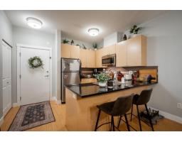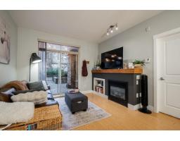 $353.97 MonthlyWelcome to Sunset Grove. This 1 bedroom plus den garden suite condo is a must see. From the moment you walk into the foyer you will appreciate the large open concept floor plan this home offers. The kitchen features granite counter tops, stainless appliances and lots of storage. Opening up into the dining area and living space this condo has room for a large table and couch and all of your furniture. Spacious master bedroom with ample closet space, and a bonus den which is large enough as a guest / kids bedroom. The walk out garden suite is extremely popular and faces inside on the quiet side of the building. Let the dog out, take the kids for a walk, or get some exercise without having to take an elevator. A must see! Gas fireplace included in strata maintenance fee. (id:12562)