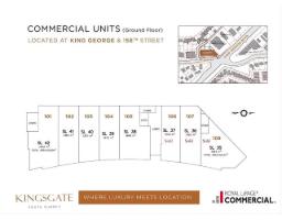 Prime retail opportunity at Kingsgate, a brand-new project at the high-traffic intersection of King George and 156th Street. This 2,386 sqft ground-floor unit, Unit 108, boasts exceptional visibility with stunning, double-height, three-sided glass windows. The space is designed to capture attention and is ideal for any retail business or professional service seeking maximum exposure. Its bright, open layout is a black canvas for your vision, while the premium location ensures a constant flow of customers. This is the perfect place to establish or expand your business in a thriving, modern development. Don't miss this chance to secure a top-tier commercial location. (id:12562)