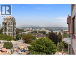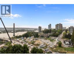 $605 MonthlyBeautifully updated 1,168 sqft sub-penthouse with stunning Fraser River, park & mountain views from floor-to-ceiling windows that flood the home with natural light. Spacious 2 bed, 2 bath layout offers excellent separation for privacy and functionality. Modern kitchen features glossy white cabinetry, quartz counters & an island, perfect for entertaining. Bright open living & dining areas are framed by panoramic views, plus a contemporary fireplace for added comfort. Spa-inspired bathrooms include heated floors in the ensuite & a deep soaker tub in the main. Upgrades include: doors, lighting, flooring, mouldings & custom blinds that filter light without compromising the view. Enjoy two private balconies, 2 parking & storage. Central location close to Queens Park, shopping & commuter routes.Quick possession available. Some photos virtually staged. (id:12562)