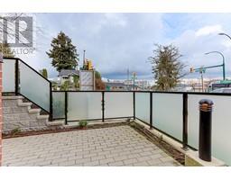 $429.57 MonthlyWelcome to Clarendon Heights a 4 storey mid rise building built by local developer, Fully Homes that completed in 2023. The brand new unit is centrally located, tucked away off busy Kingsway and only a 3min drive or 15min walk from Nanaimo and 29th Ave Skytrain station. This ground level home has 2 bed, 2 bath, a secure foyer and offers a gated patio. The open floor plan measuring 726sf offers a modern and warm Scandinavian feel. The suite offers quartz countertops, unglazed porcelain backsplashes, chrome and stainless steel appliances in the kitchen. The warm, modern and timeless feel welcomes its new owner to add their personal touch creating a unique home. This home comes one EV roughed in parking spot and one storage locker. See ClarendonHeights.ca for more details. (id:12562)