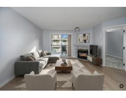 CARRINGTON COURT. Great location to stores, shopping & hospital. This corner unit (1 floor up from ground) is at the back of the building & has lots of windows. Almost fully remodelled in 2025. Two large bedrooms plus enclosed den/3rd bdrm with window. Upgrades include a refurbished kitchen with a kitchen sink window, quartz counter tops throughout including in the two restored 3pc & 4pc washrooms. New tile floors in washrooms and new laminate throughout, plus new carpets in the bedrooms. New paint & baseboards. Cozy gas fireplace & a gas line to the sundeck for bbqing. Fireplace basically heats the whole home. Low hydro bills. One parking stall and one storage locker. Community room with kitchen, outdoor common bbq & gathering area plus common workshop. Everything you need! Age 55+. * PREC - Personal Real Estate Corporation (id:12562)