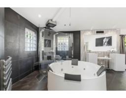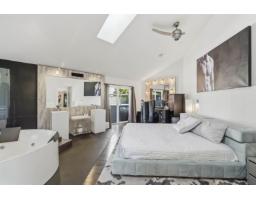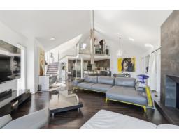 Bright and beautifully designed contemporary home showcasing stunning mountain views and abundant natural light. The striking open-concept living and dining space features soaring ceilings and flows into a loft-style bedroom with skylights and sleek glass railings. High-end finishes throughout include hardwood flooring, tile accents, air conditioning, and elegant custom lighting. The modern kitchen is equipped with quartz counters, stainless steel, lacquer cabinetry, and premium appliances. The spacious primary bedroom offers a spa-inspired ensuite with a double walk-in shower. A self-contained one-bedroom suite below, with separate garage access, adds excellent income potential. Enjoy outdoor living on the TREX deck with hot tub. Prime location! (id:12562)