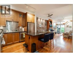 $389.06 MonthlyUnique best describes this beautiful unit to a T. The open concept floor plan features high ceilings and reclaimed pine flooring throughout. The kitchen offers a large granite island, stainless steel KitchenAid appliances, a stunning backsplash, and a gas cooktop. A new electric fireplace anchors the living room beside a striking exposed brick wall. Off the living room is a lush garden patio 10'11 x 9'11, perfect for entertaining or relaxing. The spacious primary bedroom includes a walk-through closet. Ideally located near Ryall Park and Port Royal Park, with waterfront trails for walking, cycling, and dog-friendly pathways. Enjoy this quiet riverfront community surrounded by the Fraser River, close to the New Westminster Quay Boardwalk, Queensborough Community Centre, Port Royal Beach, transit, Queensborough Landing shopping and services, and Costco. (id:12562)