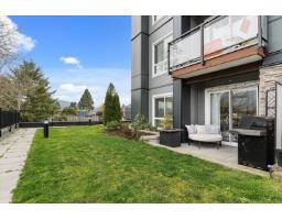 Welcome to The Robson. This corner 2 bed, 2 bath home offers one of the best layouts and locations in the entire building elevated ground floor backing directly onto green space and the complex's private park. Enjoy the privacy of being raised above street level while still having walk-out access from your patio to a grassy area and park, perfect for kids and pets. Bright, open-concept living with quartz countertops, stainless appliances, and a large island. Spacious primary bedroom with walk-through closet and ensuite. A rare opportunity to get outdoor lifestyle in a newer condo. Walking distance to Chilliwack's District 1881 for restaurants and shops. Don't miss it! (id:12562)