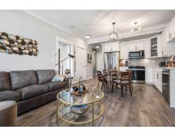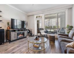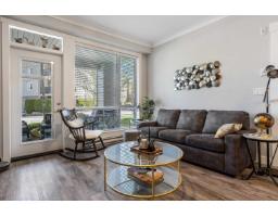Located in a quiet, walkable area steps from Vedder Pointe for restaurants/shopping & conveniently located in central Sardis making access to Garrison, Vedder River, Cultus Lake & Cottonwood Mall simple & easy. This ground floor 1 bed & den offers a seamless indoor/outdoor lifestyle; quartz counters, s/s upgraded appliances, stylish herringbone backsplash, soft-close cabinets, upgraded light fixtures, vinyl plank floors, laundry room w/extra storage & a luxurious bathroom w/heated floor & undermount sink. The den provides extra space for your home office allowing you to transition easily to the large covered patio to take in the mtn views after a long day. Secured u/g parking, gym, guest suite & pet-friendly. Enjoy a walkable lifestyle where luxury meets the ultimate convenience. (id:12562)