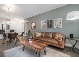 $378.60 MonthlyWelcome to this beautifully appointed ground-floor, courtyard-facing 2 bed, 2 bath home offering 881 sq. ft. of comfortable and well-designed living space. Featuring a superior level of finishings, including sleek stainless steel appliances, solid quartz countertops, shaker-style cabinetry, wood flooring, crown mouldings, and extensive wood trim. Enjoy seamless indoor-outdoor living with two private patios, perfect for relaxing or entertaining. Residents are surrounded by a central courtyard with a lavish water feature, tranquil seating areas, and private walkways. Complete with 1 parking stall and 1 storage locker. (id:12562)