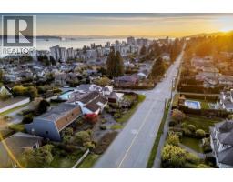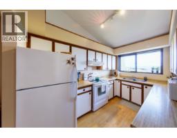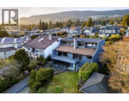 This authentic 1970s West Coast Contemporary is rich in architectural character and lifestyle appeal, positioned to capture beautiful outlooks from a sun-filled flat property toward Burrard Inlet and the Vancouver skyline. Dramatic A-frame inspired rooflines, exposed beams, a striking open-riser staircase, and a spacious main-level deck create seamless indoor-outdoor living with exceptional volume and light. Lovingly maintained with permitted updates in the early 2000s, the home retains its original design integrity, including vintage kitchen and bathrooms, warm cedar accents, and clean-lined details true to its era. Flexible layout with suite rough-ins below and main floor laundry rough-ins. Set on a bright, level 7,500 sq.ft. property ideal for families, with a rare ~500 sq.ft. lane-access carport (4 vehicles). Steps to Ambleside Beach, Park Royal, schools, and amenities. (id:12562)