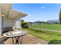 Discover the best value townhome in Sardis! This charming one-level rancher is located in Cottonwood Village, a well-maintained 55+ community nestled in the heart of Sardis"-just steps from shopping, dining, and all amenities, with quick access to the freeway. Tucked into a quiet corner of the complex, this home features a spacious deck with beautiful mountain views and sits on a crawl space that offers ample storage. Pet-friendly (1 cat or dog) and affordably priced with a low $270/month maintenance fee covering management, building maintenance, landscaping, water, sewer, garbage, snow removal, and city taxes. Cash only, no bank financing available. Quick possession possible! (id:12562)