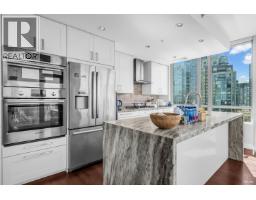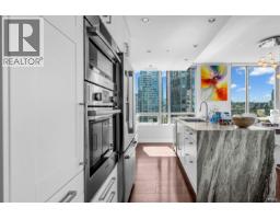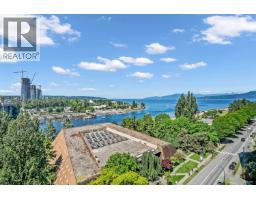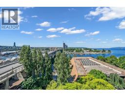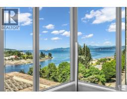 $1,036.98 MonthlyWaterfront living at its absolute finest. This stunning 2-bedroom, 2-bathroom home at ALVAR offers unobstructed southwest views over English Bay. Fully renovated down to the studs with exceptional craftsmanship and premium finishes throughout, the residence features an open-concept kitchen with a large granite island, waterfall countertops, Bosch appliances including a gas range, and custom solid wood cabinetry. Floor-to-ceiling windows capture breathtaking views from the kitchen, living room, dining area, and private balcony. Enjoy year-round comfort in this upscale building with air conditioning, plus 1 parking stall and 1 storage locker. A rare opportunity to experience luxurious resort-style waterfront living. Viewings by appointment only. (id:12562)