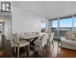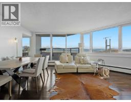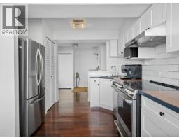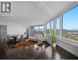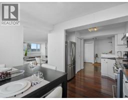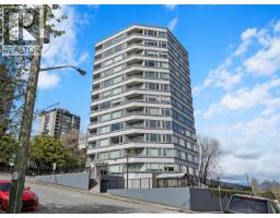 $1,054.73 MonthlySpacious penthouse living with stunning 180-degree views in downtown New West! One of only 3 top floor units offering panoramic water, mountain and city views with sought-after southwest exposure. Updated home features two balconies, engineered hardwood floors, upgraded stainless steel appliances and in-suite laundry. Spacious primary bedroom offers two large closets, while the second bedroom functions perfectly as a home office or guest room. Heat and hot water included in strata fees. Well-managed strata with major updates (2002-2026) such as: windows, balconies, roof, repiping, parking membrane and common areas. Steps to shops, parks, the Quay, schools, Yorkville University, and SkyTrain. Move in as-is, or bring your decorating ideas. (id:12562)