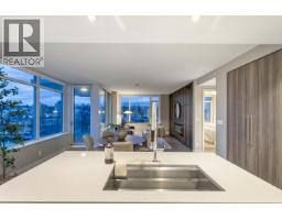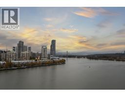 $789.52 MonthlyExperience waterfront luxury at The Peninsula, New Westminster´s crown jewel on the river. This luxurious 2 BDRM, 2 BATH home offers nearly 1200 square ft of refined elegance with custom millwork, herringbone hardwood floors & soaring floor-to-ceiling windows capturing breathtaking west-facing sunsets over the Fraser River & city skyline. A chef-inspired kitchen with integrated Gaggenau appliances, a quartz waterfall island, Italian cabinetry with undermount lighting & custom pull-out pantries. Spa-inspired bathrooms with marble-style finishes, dual floating vanities & frameless glass shower. Resort style amenities incl. concierge service, guest suite, fitness & steam room, theatre & the exclusive Panorama Club - feat. a private lounge, BBQ terrace & hot tub overlooking the water. (id:12562)