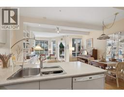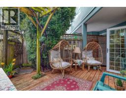 $681 MonthlyA rare original in Kitsilano's beloved Broadway corridor. This original owner worked with the developer to open the main floor with soaring beamed ceilings AND to secure a full 2nd bathroom, almost certainly the only patio unit in the building with both features. 1,149 sq.ft. across 2 levels: dramatic built-in bookshelves, tiled fireplace, hardwood floors, gas kitchen, and a pergola-wrapped over 300sf private sunny patio. Upstairs: primary bedroom, 2nd bedroom, den, office nook, 2 full baths & in-suite W/D. Building perks: parking, locker, workshop & a stunning common roof deck with 360° panoramic views. Steps to Kits Beach, top cafes, yoga & transit. CMHC prepaid leasehold - standard financing available. Old-school Kits at its FINEST! See 123-3440WBroadway.com for MUCH more. (id:12562)