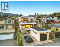 Ultimate contemporary ocean-view home in Ambleside Beach, near top schools & all amenities. This custom 3059 sf, 5-bed, 3-level residence offers outstanding quality, exquisite luxury finishes, & stunning views from a large entertainment balcony. The reverse floor plan features open-concept living/dining with seamless indoor-outdoor flow. Highlights include A/C, Euroline windows, electric blinds, security system, & a striking floating glass + steel staircase. The elegant primary suite boasts a private deck & spa-like ensuite. Includes a 2-bed legal basement suite, 1-car garage, carport parking, back lane access, new asphalt street, sleek stucco/Trespa exterior, & professionally landscaped, low-maintenance grounds. Tailored for families or various lifestyles. A rare blend of style & function! (id:12562)