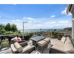 Welcome to your dream coastal retreat. This stunning multi-level home offers 3,264 sqft ofbeautifully designed living space, highlighted by sweeping 180-degree ocean views. Blending modern elegance with timeless charm, the home features a gourmet kitchen with maple cabinetry, granite countertops, and premium S/S appliances. A bright solarium extends off the kitchen creating the perfect space to dine while enjoying the scenery. Three expansive sundecks provide endless opportunities to take in views of the Gulf Islands, Semiahmoo Bay and the White Rock Pier, with nearly every room capturing sunsets. The lower level includes a brand new bathroom, complementing the many upgrades throughout. Complete with a double garage and ample parking, this exceptional property is just steps from the beach. (id:12562)