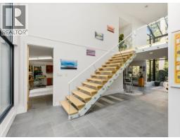 Tucked away at the end of a quiet cul-de-sac, this hidden retreat offers over 150 feet of private Seymour River frontage and a lifestyle few homes can match. Bordered by the river and greenbelt, the setting is peaceful and immersive-where the sound of the river and surrounding nature create a daily escape, yet city amenities remain just minutes away. Designed to embrace its surroundings, this stunning West Coast Contemporary home is filled with light through expansive glass and skylights. A dramatic entry with floating staircase and beautiful flooring welcomes you in, while the sunken living room, open kitchen, and two fireplaces create a warm space for relaxing or entertaining. The spacious primary suite is a true sanctuary, featuring a luxurious 6-piece ensuite w/private sauna. A separate bedroom wing offers three additional bedrooms, ideal for family or guests. With many upgrades throughout, this is a rare opportunity to own a private riverfront retreat where nature, comfort, and design come together. (id:12562)