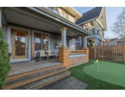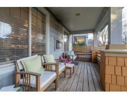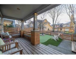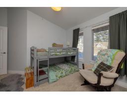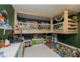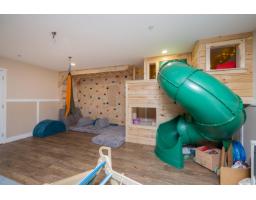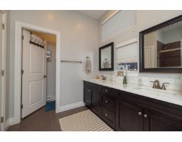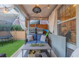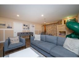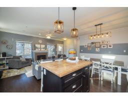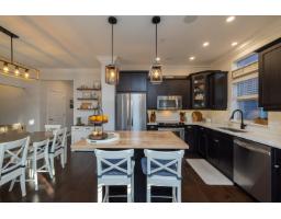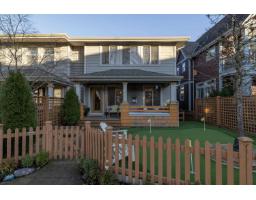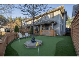 In the heart of Garrison Crossing, this 5 bed, 4 bath home is part of a quiet, duplex-style townhouse complex in a park-like setting, just steps to shops, dining, and recreation. The main level offers a bright open layout with large windows, engineered hardwood floors, and a functional kitchen featuring stainless steel appliances, stone counters, ample cabinetry, a butlers pantry, and a large island. A main-floor bedroom and full bathroom add flexibility. Upstairs includes three bedrooms, highlighted by a spacious primary suite with double closets and a full ensuite with double sinks. The fully finished basement provides a fifth bedroom, a large rec room with a play structure, and a new H/W tank. Enjoy relaxing outdoor spaces with a front and back porch, and your very own putting green. (id:12562)