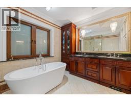 This extraordinary 7,654 sq.ft. Chartwell residence, set on a 15,562 sq.ft. lot, offers 6-bedroom, 7-bath, with spectacular 270° views of the ocean, Lions Gate Bridge, and city skyline. Distinguished by rare dual entrances from both north and south Chartwell Street, The exterior is clad entirely in unique Karamaili gold marble, while interiors are marble floors, hand-carved from Indonesian mahogany by master artisans. Italian ruby marble countertops highlight the kitchen and bar, complemented by a natural marble mural and an exquisite jade-carved fireplace from Afghanistan. Japanese embroid silk wall paper. Wine bar and home theatre outdoor pool and inlaw suite. Steps from Chartwell Elementary/Sentinel Secondary, the location is unmatched. Open House Feb. 21 (Sat) 2 - 4 pm. (id:12562)