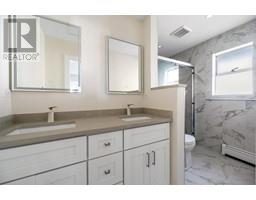 This beautifully renovated Vancouver Special on a deep lot! Updated electrical and plumbing. Enjoy bright living room with sunny south facing balcony. Tasteful upgrades including floors, quartz counter tops, kitchen, windows, new stainless steel appliances, and many more. Upper level features 3 large bedrooms, HUGE open concept kitchen with dining area opening to a covered sundeck with amazing Mountain view. Main level features two fully finished rental suites, 1 two-bedroom and 1 one-bedroom unit with separate entry, separate kitchen, and separate laundry. Exterior has fully fenced front yard, concrete tile roof, and newly renovated garage. Lots of parking in the back. Steps to bus stop, school, shops and restaurants. (id:12562)
