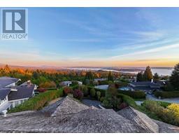 STUNNING 6-BEDROOM CUSTOM FAMILY HOME WITH SPECTACULAR PANORAMIC VIEW OF LIONS-GATE-BRIDGE, DOWNTOWN AND STANLEY PARK ON HIGH SIDE OF A LARGE 17,502 SQFT LOT. This amazing home, with a heated driveway, features on the main flr a spacious living rm and private dining room, stunning gourmet kitchen, eating area, large family room and bdrm/den. Upper flr features grand primary bedroom w/stunning en-suite, plus 3 spacious bedrms. Lower flr features large rec-rm with bar and wine rm ideal for entertaining, 2 additional bedrms and gym. Centrally located, walking distance to Chartwell Elementary & Sentinel Secondary Schools, and only minutes drive to Mulgrave and Collingwood Private Schools. PLUS: heated driveway, A/C, solid hardwd flring, extensive millwork, high-end finishing and much more ... (id:12562)