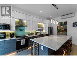Gorgeous 3 level home w/excellent street appeal situated on the high side of the street. Unique custom design boast 10' ceilings on both levels w/the top flr being vaulted . Entertain in the great. Rm w/open living/dining & kitchen which has luxury lacquer cabinets incl 10' island with bar frdge Samsung appliance package w/pot filler. 19' Bifold Patio Doors spills out to the patio to enjoy the fenced backyard. Dining Rm has warm raised gas F/P with built-in shelving & desk. Comfort with air con & radiant flr heat. Your kids will love their secret play rm & loft. Engineered h/w flrs & Italian tile walled mstr bdrm 7-pce ensuite. Smooth transition walk-in showers w/frameless glass doors. Convenient mud rm, 2 brm separate entry legal basement suite. Detach double gar w/level 2 EV charging plug. (id:12562)