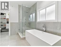 This stunning 4 year young home offers a modern open plan, luxury, quality & fantastic family conveniences. Big windows & 9' ceilings thru out bring in all the natural light, the beautiful kitchen has an oversized island, abundance of cabinetry + family eating area leads to family room & back deck + main floor bdrm & bath, 4 ensuited bedrooms + laundry upstairs, primary bdrm features w/i closet, luxurious bath & private balcony. Downstairs is a legal 1 bedroom suite + second suite potential = possible income of $3300/month. Radiant heat, A/C, big 6300 square ft lot with patios & grassed play area, detached double garage + 4 extra spots. Only minutes to Hwy 1, West Coast Express, schools & parks. (id:12562)