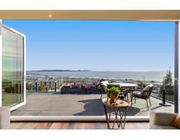 Truly panoramic, unobstructed 180° ocean, beach & mountain views from every level. No power lines and perched above a steep drop for a rare view corridor. Just a 4-min walk to the beach and 5 mins to Centennial Park trails, yet set back for privacy and above sea level for peace of mind. Top-floor living area with accordion doors and indoor/outdoor lifestyle. 2nd level features primary retreat with breathtaking views from bed, balcony & spa-inspired ensuite, plus three additional bedrooms & two additional baths. 3rd level is dedicated entertainment area with theatre room, wet bar, lounge & 3rd balcony. Legal 1-bed suite on 4th level. Control4, A/C, elevator potential, premium windows, 2-car garage + 4 driveway parking. Semiahmoo Catchment. You won't find another like it. (id:12562)