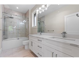 This amazing custom built home is located in White Rocks most desirable area. The astonishing vaulted ceiling in theliving room and the natural light that floods in through the south facing front windows. The primary bedroom on the main with full 5 piece ensuite & walk in closet. The massive granite island in the kitchen, herringbone tile backsplash& Fisher Paykel appliance package make this home perfect for entertainers, growing families and multi-generationalliving. The primary bedroom above has its own private balcony along with 2 more large bedrooms w/shared ensuite.Downstairs has a large rec room w/ separate entry & 1 bedroom/bath just off of the roughed in wet bar. 2 AC units/generator, a 1 bedroom legal suite, detached double garage w/lane access. Within the Semiahmoo Catchment. (id:12562)