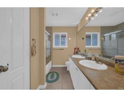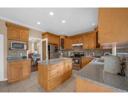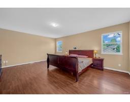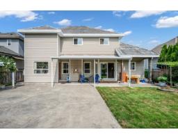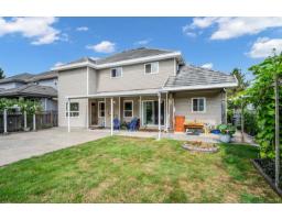 This spacious two-storey home on a large south-facing lot offers an open and bright layout with generous living spaces, a maple kitchen with center island, two gas fireplaces, raised ceilings, four bedrooms upstairs plus a main-floor den, and a one-bedroom suite with private entrance. The heat pump air conditioning system, ensuring year-round comfort. The fully fenced yard is beautifully landscaped with vibrant flowers, while the backyard features a grapevine-covered arbor full of grapes, along with a large play area for kids. A rare blend of comfort, charm, and great value in a sought-after Fraser Heights neighborhood! (id:12562)