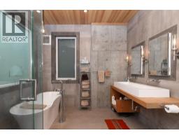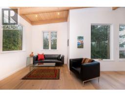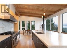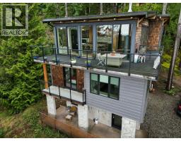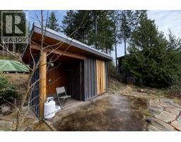 Nestled in the treetops, experience soft ocean breezes while looking over the distant Salish Sea and Islands. This extraordinary 4 year old home located minutes from Gibsons features concrete in-floor heating, lovely vaulted wood ceilings with wood beams, oak flooring on the top floor, a chef´s kitchen with top end Fisher Paykel appliances and a dual fuel range. The 9 foot kitchen island seats 6 stools making entertaining a breeze while the guests wander in and out from the expansive deck. The primary bedroom offers spectacular views and boats a 5 piece spa-inspired bath. Included in the package is a two bedroom cottage located privately away from the main house. Separate sauna and outdoor shower is shared between both residences.The 1400 sq.ft. detached workshop w 12 foot ceiling height features triple bay doors stacking into one, wiring for 240 and 3 phase tools, an office space, storage and a paint room. A drilled well enables year round watering for the greenhouse and the bountiful vegetable garden. (id:12562)