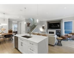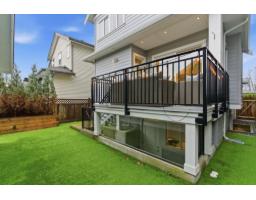 One of the finest custom home in the area, set in a cul-de-sac near Morgan Crossing. This immaculate, like-new 5 bed, 4 bath home showcases exceptional craftsmanship. The open main floor is ideal for entertaining with a chef's kitchen featuring seating island, built-in fridge, gas stove, premium appliances, and ceiling-height cabinetry. Glass railings add architectural detail, while a built-in TV media unit with fireplace anchors the living space and opens to a large patio. A den and mudroom complete the main. Upstairs offers a serene primary retreat with spa-like marble ensuite, large walk-in closet, two additional bedrooms, and laundry. Basement includes owner-use family room and bright 2-bed legal suite. Low-maintenance turf yard, lane-access double garage. (id:12562)