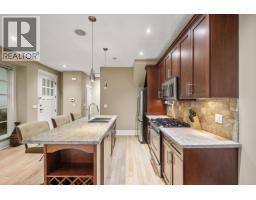 Non-conforming strata triplex with no strata fees! Built in 2007, this meticulously crafted Craftsman-style townhome in Central Lonsdale offers 1,552sqft across three spacious levels. The main floor features 9' ceilings, a gourmet kitchen with granite counters, breakfast bar, stainless steel appliances, and a gas stove, flowing into an open dining and living area with a cozy gas fireplace. A powder room and private patio with secure backyard, plus a single-car garage off a quiet lane. Upstairs, vaulted ceilings highlight the primary suite and a spacious second bedroom. The lower level offers flexible space for a family room or third bedroom with walk-in closet, with plumbing roughed-in for an additional bathroom. Central location, steps to Lonsdale shopping, recreation and amenities. (id:12562)