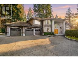 Sophisticated Anmore estate with full one-acre, private lot and SUBDIVISION POTENTIAL. Surrounded by mature landscaping, this residence features an upper and a lower driveway equipped with electric gates for a grand entrance. Step inside to the inviting foyer with beautiful curved staircase, front living room with vaulted ceiling, and a spacious kitchen with access to the large, covered deck, allowing for seamless indoor-outdoor living. A true entertainer´s dream. The main also features a full bathroom and laundry room with second staircase to upper level, where you´ll find 4 large bedrooms and 3 bathrooms including the stunning en-suite. Down offers a spacious suite, full bathroom, media room and outdoor patio. Three car garage and endless opportunities in this beautiful neighbourhood. (id:12562)