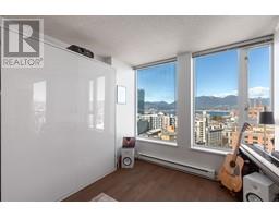 $463.28 Monthly1 BED + BALCONY + LARGE DEN with breathtaking unobstructed MOUNTAIN, OCEAN, and city view - each day unveils a unique panorama. FLOOR-TO-CEILING windows invite an abundance of natural light into the home. The living room features a space-saving Murphy bed with a hydraulic system for effortless use, unfolding into a comfortable queen-size bed, while the bedroom can now serve as another bedroom or a dedicated office. Enjoy in-suite laundry, 1 parking, and a storage locker. Super CONVENIENT location: 5 min walk to the Seawall, SKYTRAIN, Rogers Arena, Concord Park, Costco, T&T, International Village, coffee shops, and many restaurants. Additional amenities include a GYM, office/lounge space, visitor and bike parking, along with upgraded elevators. Rare opportunity - come see it for yourself! (id:12562)