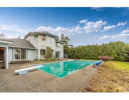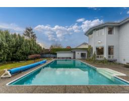 Corner lot. Great family home in an awesome location on Brookswood. Floor layout featuring an open plan. Kitchen has large eating bar and a nook. Family room with gas fireplace is joined with an office/den. Separate dining room and sunken living room with a gas fireplace. Three bedrooms up. Master is drenched with sunlight and has 3 piece ensuite. Large bonus room above the garage, great for a pool table and all sorts of games. This great south facing back yard has an in-ground pool newly lined, hot tub room, pool house and a shop/storage shed. Fenced, hedged and very private. Roof is less than 10 years old!! Water tank 1 yr. Custom built and has great structure!! (id:12562)