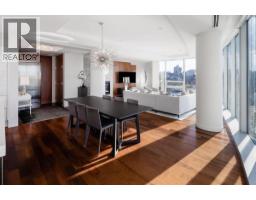 Welcome to The Erickson, a prestigious waterfront residence in Yaletown designed by renowned architect Arthur Erickson. This rare three-bedroom corner home offers approximately 2,100 sq. ft. of refined living space with spectacular views of False Creek and the North Shore mountains from nearly every room. Accessed by a private elevator, the home features an expansive open layout, floor-to-ceiling windows, and central air conditioning for year-round comfort. The bright living and dining areas open to a 260 sq. ft. waterfront terrace through a Sunflex folding wall system, creating seamless indoor-outdoor living ideal for entertaining. The gourmet SieMatic kitchen is equipped with premium Miele and Sub-Zero appliances, sleek cabinetry, and stone surfaces. (id:12562)