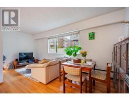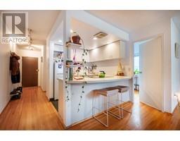 Ideal for First-Time Buyers! This corner-unit 2-bedroom condo offers modern living in a highly desirable location. Renovated in 2016, it features a sleek kitchen with stainless steel appliances, Corian countertops, and an open-concept design with an eating bar. The updated bathroom, solid oak flooring, and contemporary lighting enhance the home's appeal. Large windows fill the spacious living and dining areas with natural light. The versatile second bedroom is perfect for an office or child's room (no closet). Includes l storage locker; parking available for $25/month {waitlist applies). The well-maintained building boasts newer windows (2010), roof {2009), and fire panel (2016). Located 2 blocks from VGH in a quiet, central neighborhood. No pets, no smoking. Act fast! (id:12562)