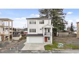 New construction in a fantastic Sardis location, just steps from schools, recreation & shopping. This bright, modern home features clean lines, light tones & a stunning white kitchen w/ quartz countertops, matching quartz backsplash, s/s appliances & a gas range. The open floor plan showcases a tiled feature fireplace w/ built-in cabinetry, a spacious dining area w/ feature wall & a waterfall-edge quartz island w/ extra storage. 10' ceilings on the main, no carpet & patios on both the east & west facing sides offer great indoor-outdoor living & yard space w/ stairs from the main level. 1 bedroom on the main, 4 upstairs, plus upstairs laundry w/ built-in cabinetry & quartz counter. Includes a legal 2 bdrm daylight suite, built-in cameras, r/i vacuum, * PREC - Personal Real Estate Corporation (id:12562)