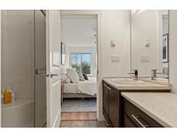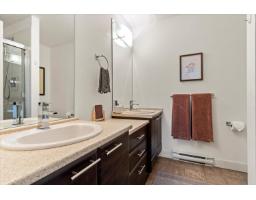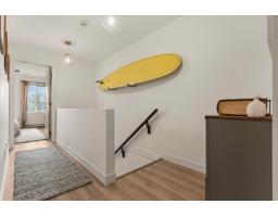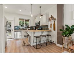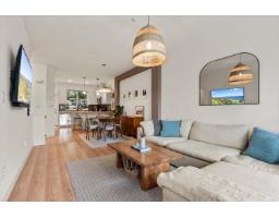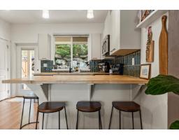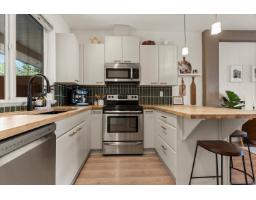 Rare RENOVATED townhome walking distance to Jinkerson Park/Mt Thom Trails with stunning valley views and parking for 3 cars, including a full size pickup. Walk out backyard off the kitchen in a private setting with no neighbours in sight. Updated kitchen with butcher block counters, refinished cabinets, new hardware, backsplash, pantry, and dishwasher (2025). Open layout with 9ft ceilings, dining area for full size table, renovated main floor bathroom, and bright living room with deck and views. Updated laminate, paint, plush stair carpet, and wainscotting throughout. Upstairs offers 3 spacious bedrooms, including a primary with views and 4 pc ensuite + another renovated 4 pc bathroom. New lighting, washer and dryer (2025), and large L shaped tandem garage with epoxy floors + ample storage (id:12562)