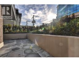 This 622sf, 1 bedroom + den + flex, corner condo unit at Cambie+7 features light warm colour scheme, wide plank wood-textured laminate floors, plenty of natural lights streaming in from two directions. Functional rectangular living area has access to a huge glass den which can be used as formal dining room or your office. Out the den is the large L-shaped wrap-around patio lined with green planters. Gallery kitchen comes with two-toned wood veneer and white high gloss cabinets, Fisher & Paykel stainless steel appliances, gas cooktops, Caesarstone quartz countertops and backsplash. The bedroom has a closet + a huge flex room which can be used as walk-in closet, extra shoe closet or office. Rent includes one parking stall. (id:12562)